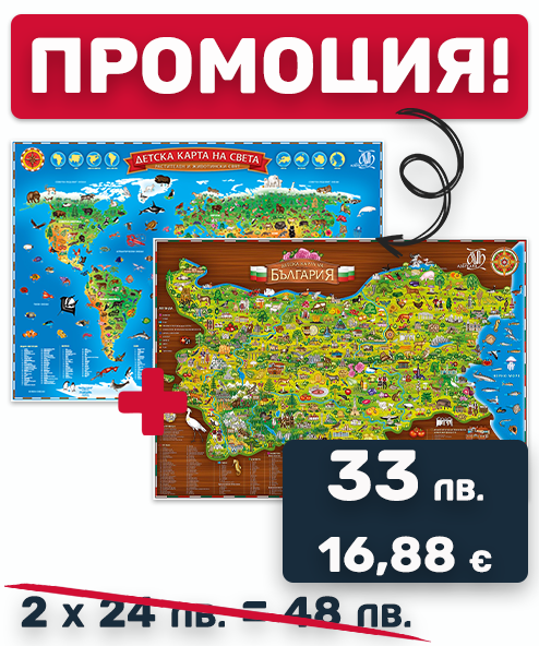 Картите, които трябва да има всяко дете! Детска карта на България и детска карта на света. Показват културните и природни забележителности, както в България, така и по целия свят. С тях децата по-лесно възприемат и учат с интерес.